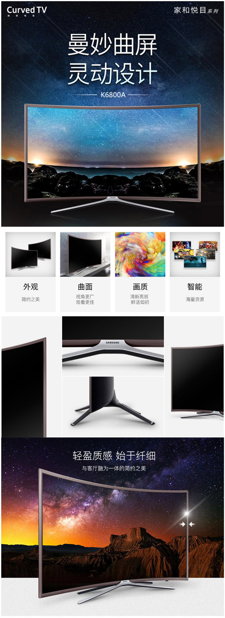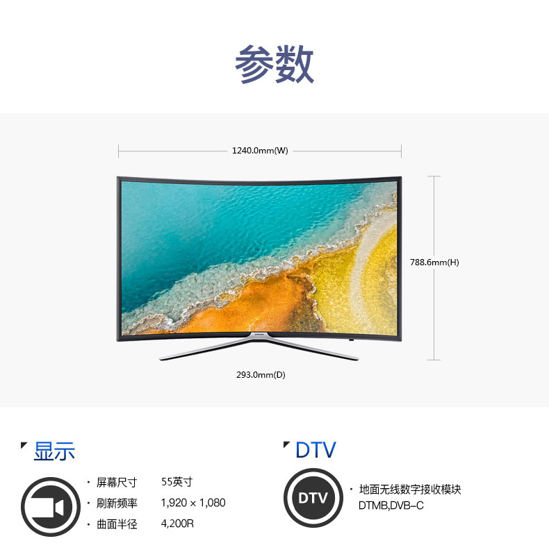 三星(SAMSUNG) UA55K6800AJXXZ 55英寸 全高清智能液晶曲面电视
