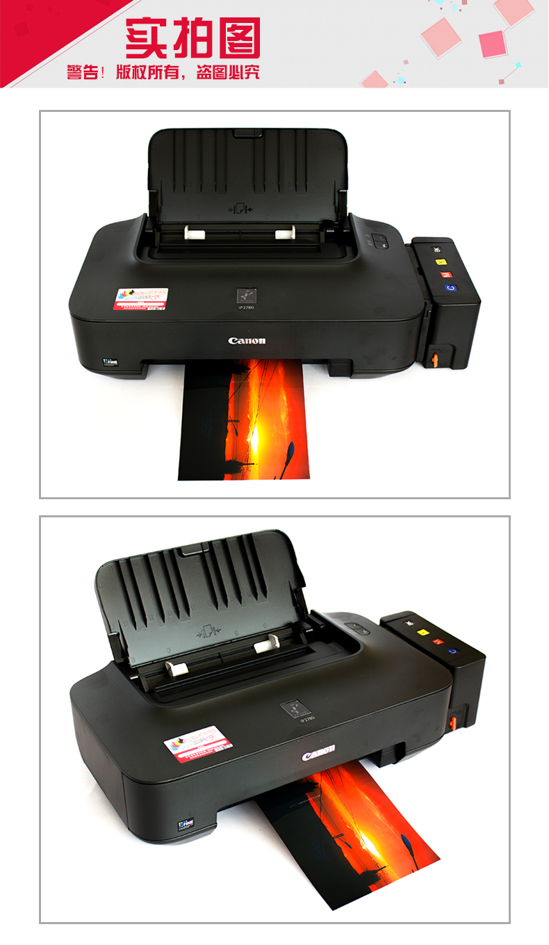 佳能ip2780彩色喷墨打印机办公家用打印机无边距连供学生照片打印