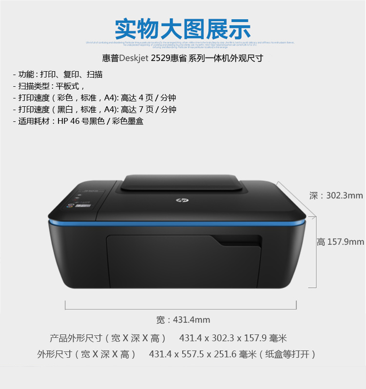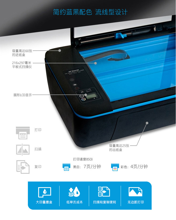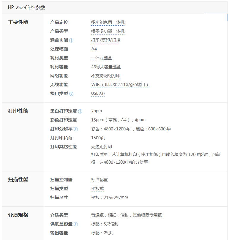 商品名称:惠普(HP)Deskjet 2529 复印扫描家用多功能彩色喷墨打印机一体机