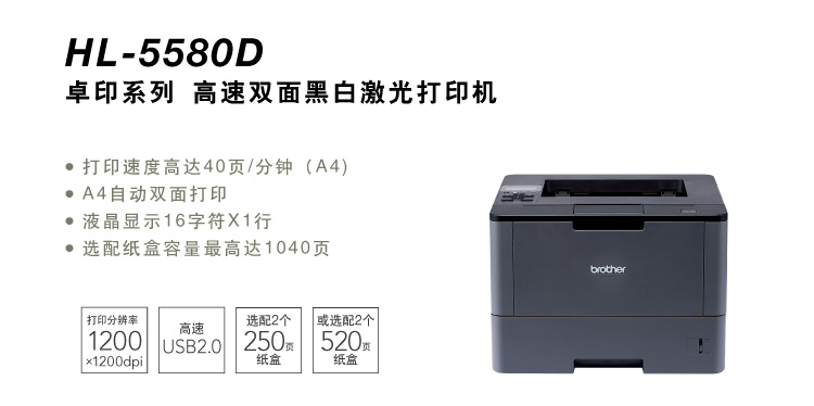 商品名称:兄弟(brother)HL-5580D 高速黑白激光双面打印机 可选配超大容量纸盒