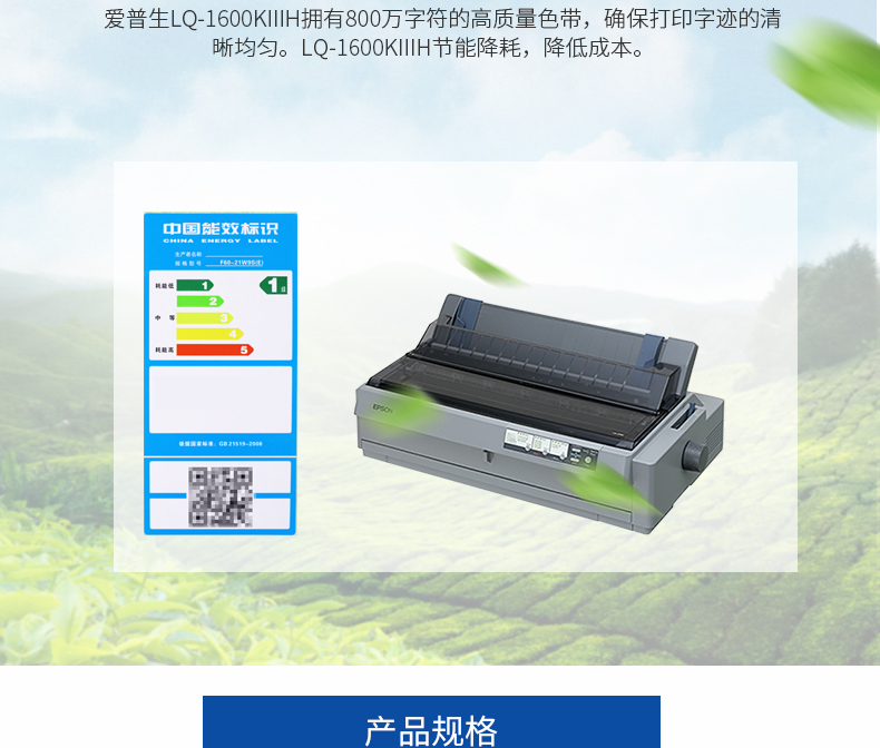 商品名称:爱普生(EPSON)LQ-1600KIIIH/1600k3h经典财务报表针式打印机