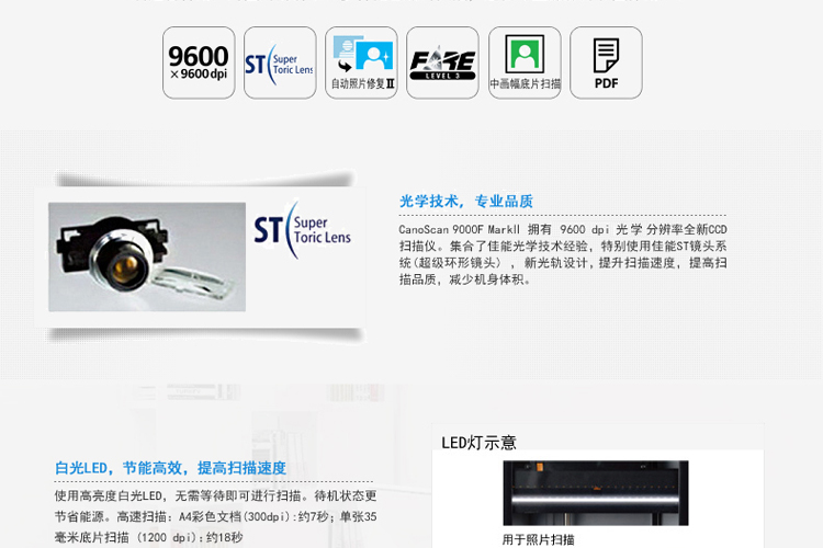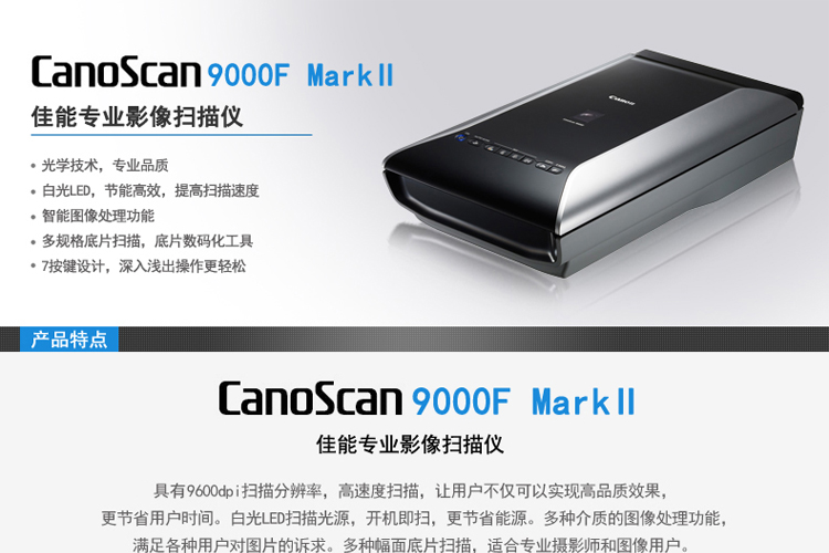 商品名称:佳能(Canon)CanoScan 9000F MarkII 平板底片扫描仪(不包邮