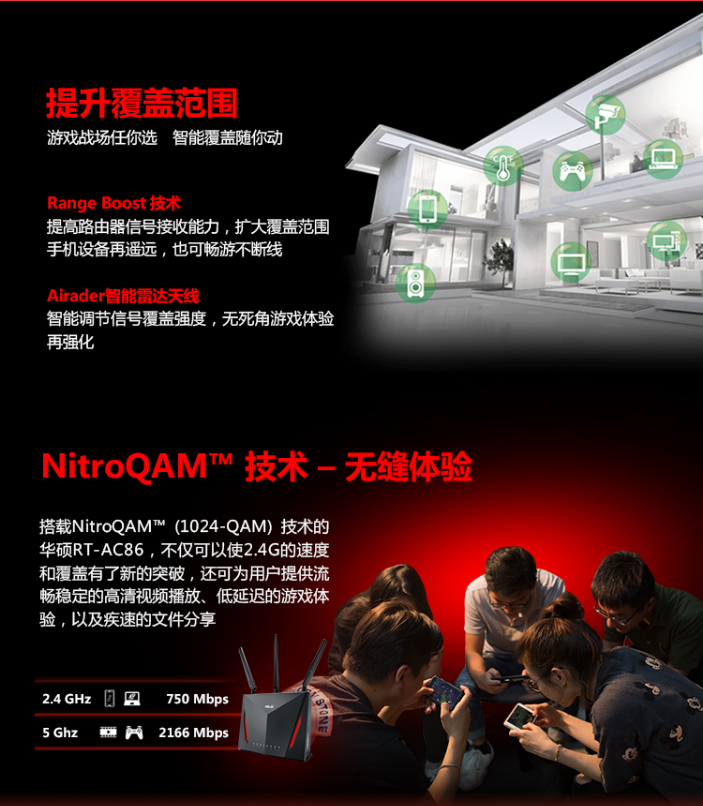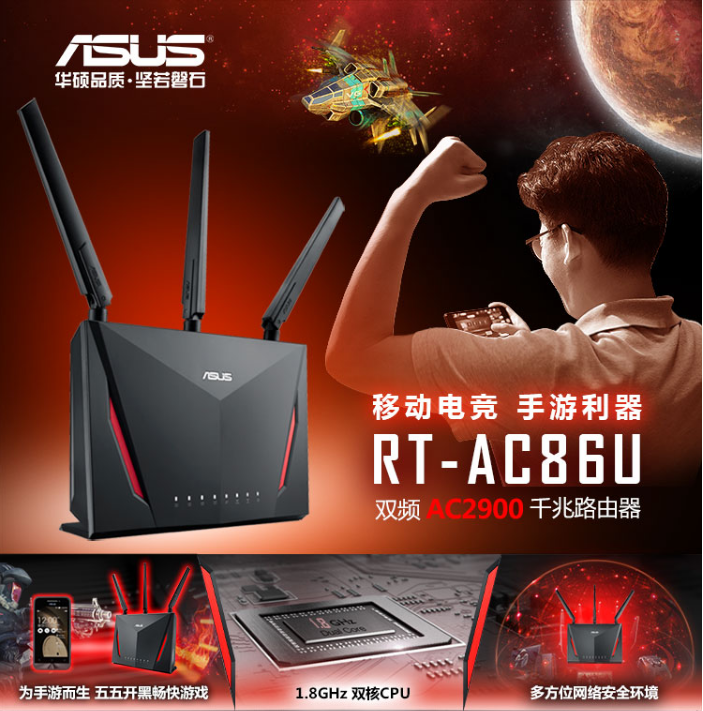 商品名称:华硕(ASUS)RT-AC86U 游戏路由2900M双频全千兆低辐射/智能无线
