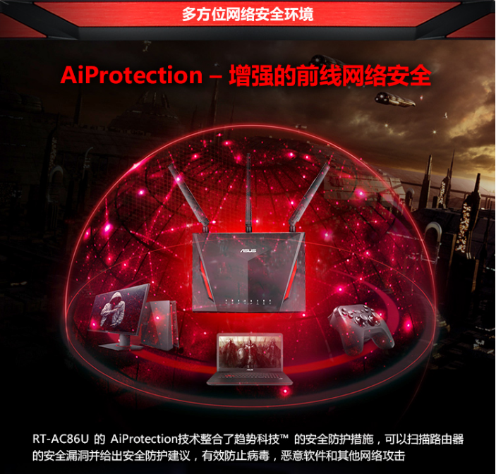 华硕(ASUS)RT-AC86U 游戏路由2900M双频全千兆低辐射/智能无线