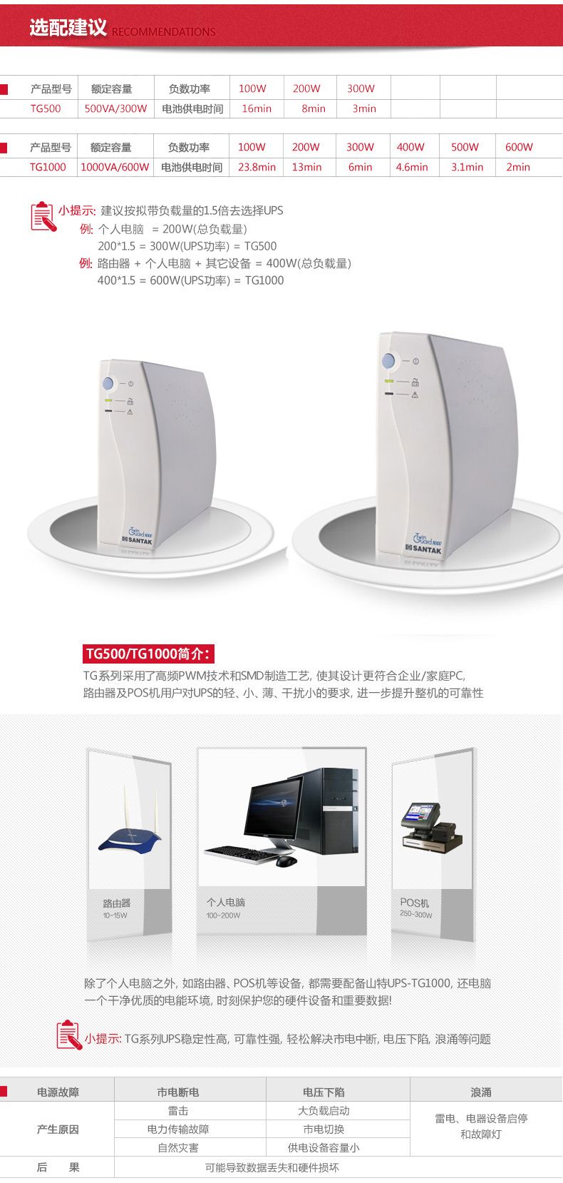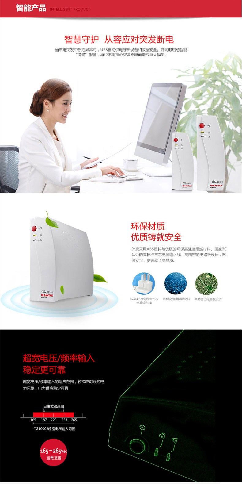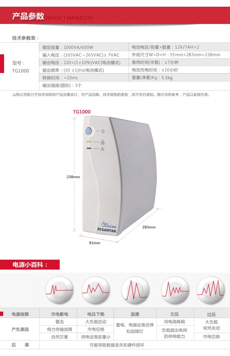 商品名称:山特(SANTAK) UPS不间断电源后备式TG1000电脑服务器防浪涌断