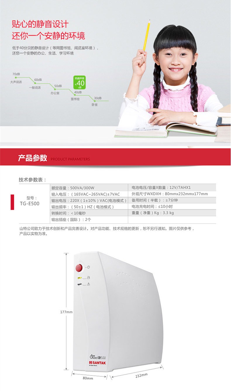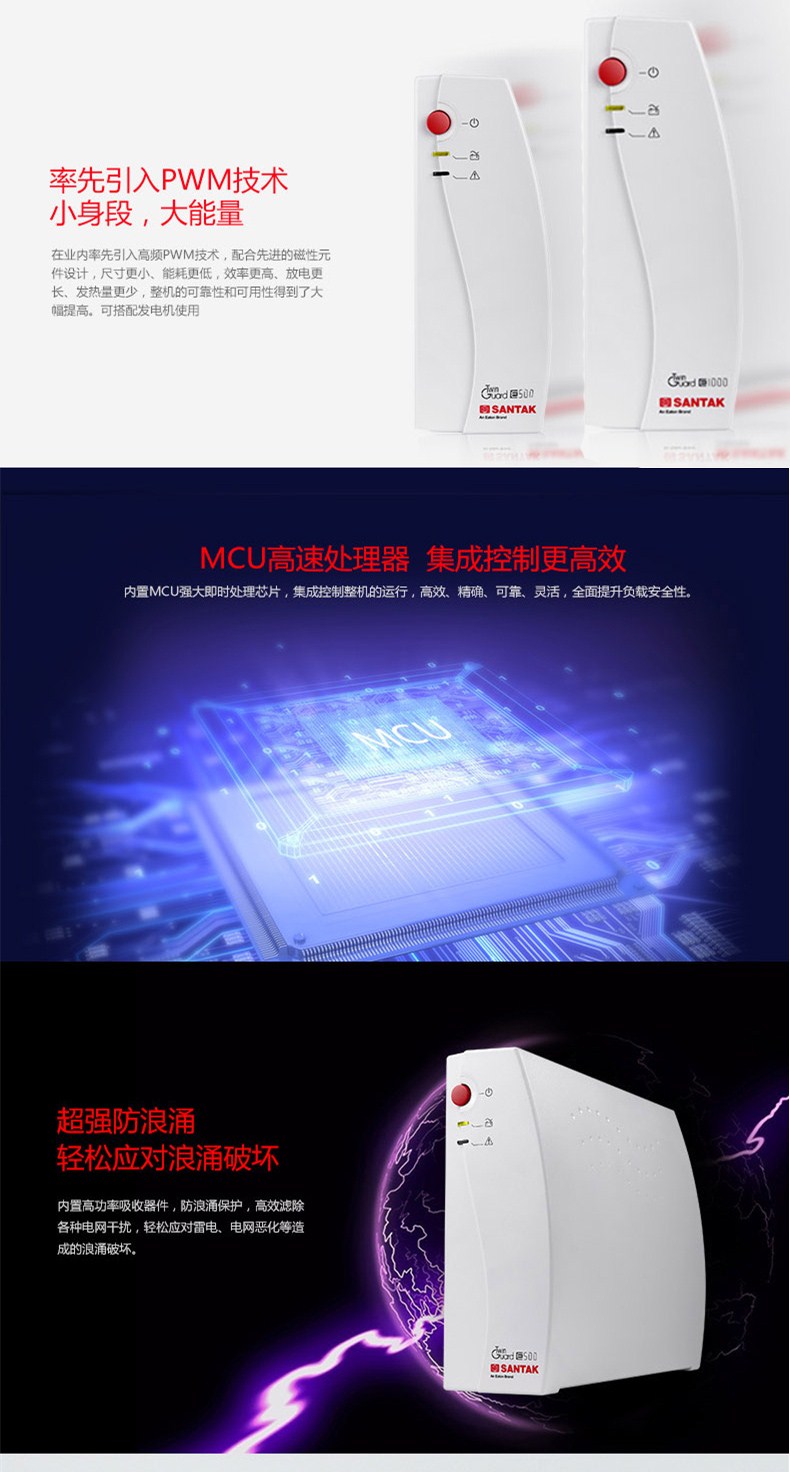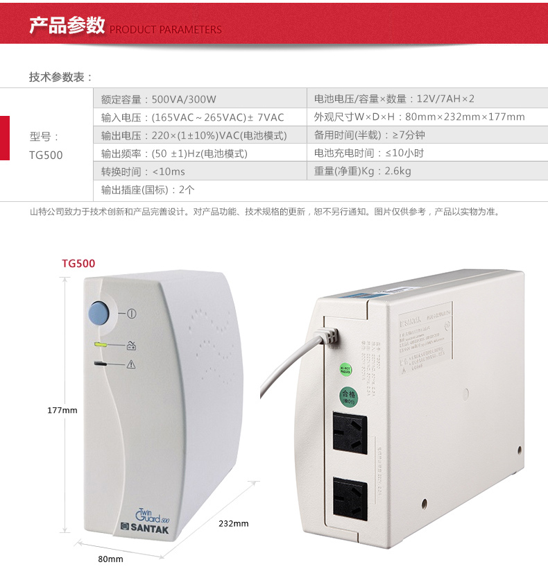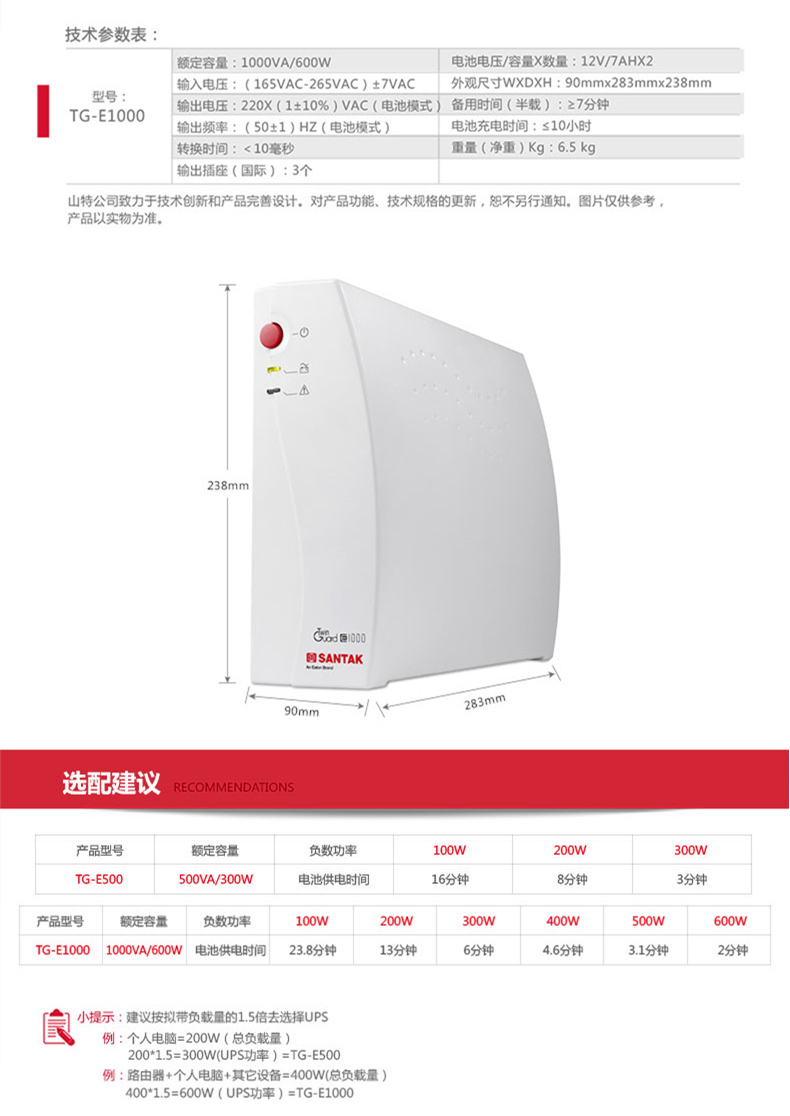 商品名称:山特(SANTAK) UPS不间断电源后备式TG1000电脑服务器防浪涌断