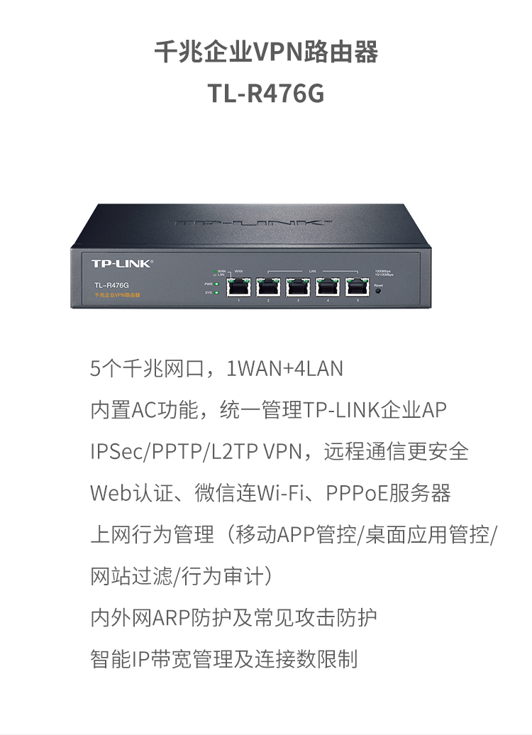 商品名称:TP-LINK TL-R479G+ 多WAN口企业级千兆有线路由器防火墙/VPN/微