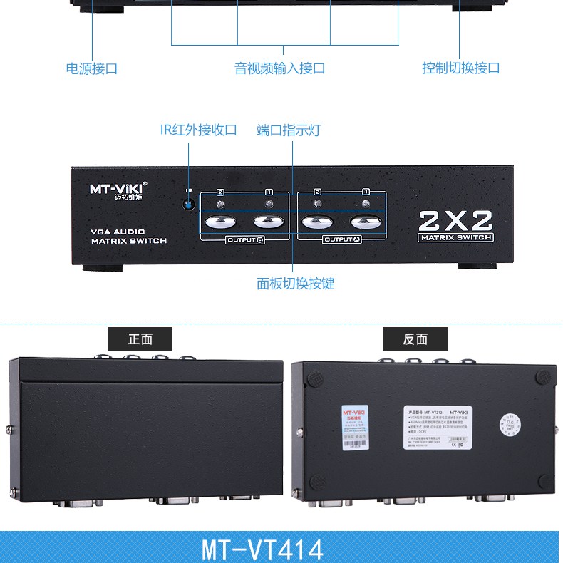 商品名称:迈拓维矩(MT-viki) MT-VT212 VGA矩阵式切换器 两进两出带音频