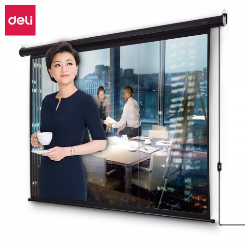 得力(deli)120英寸 4:3遥控电动投影幕布投影布(标配遥控器)家用