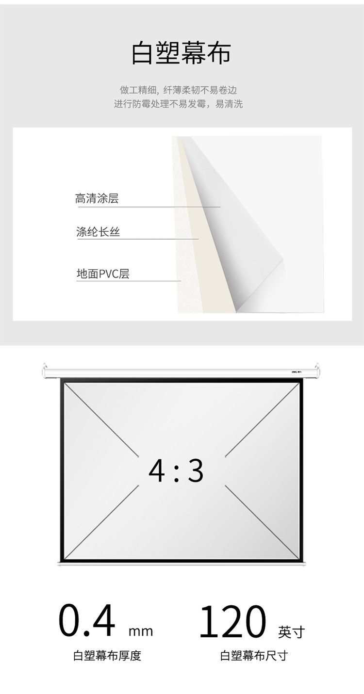 得力(deli)50493 120英寸4:3可调节电动投影幕布/投影幕/投影机幕布 白色