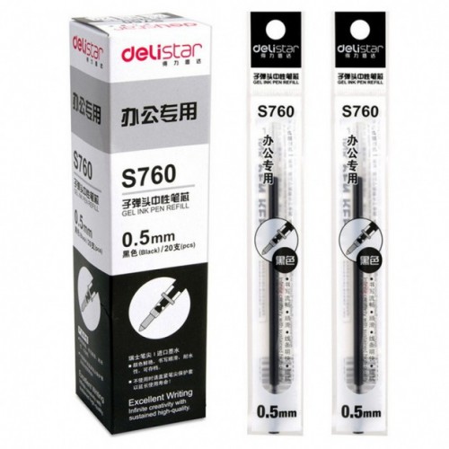 得力(deli)笔芯 中性笔/水笔/签字笔替芯20支装S760子弹头0.5mm20支