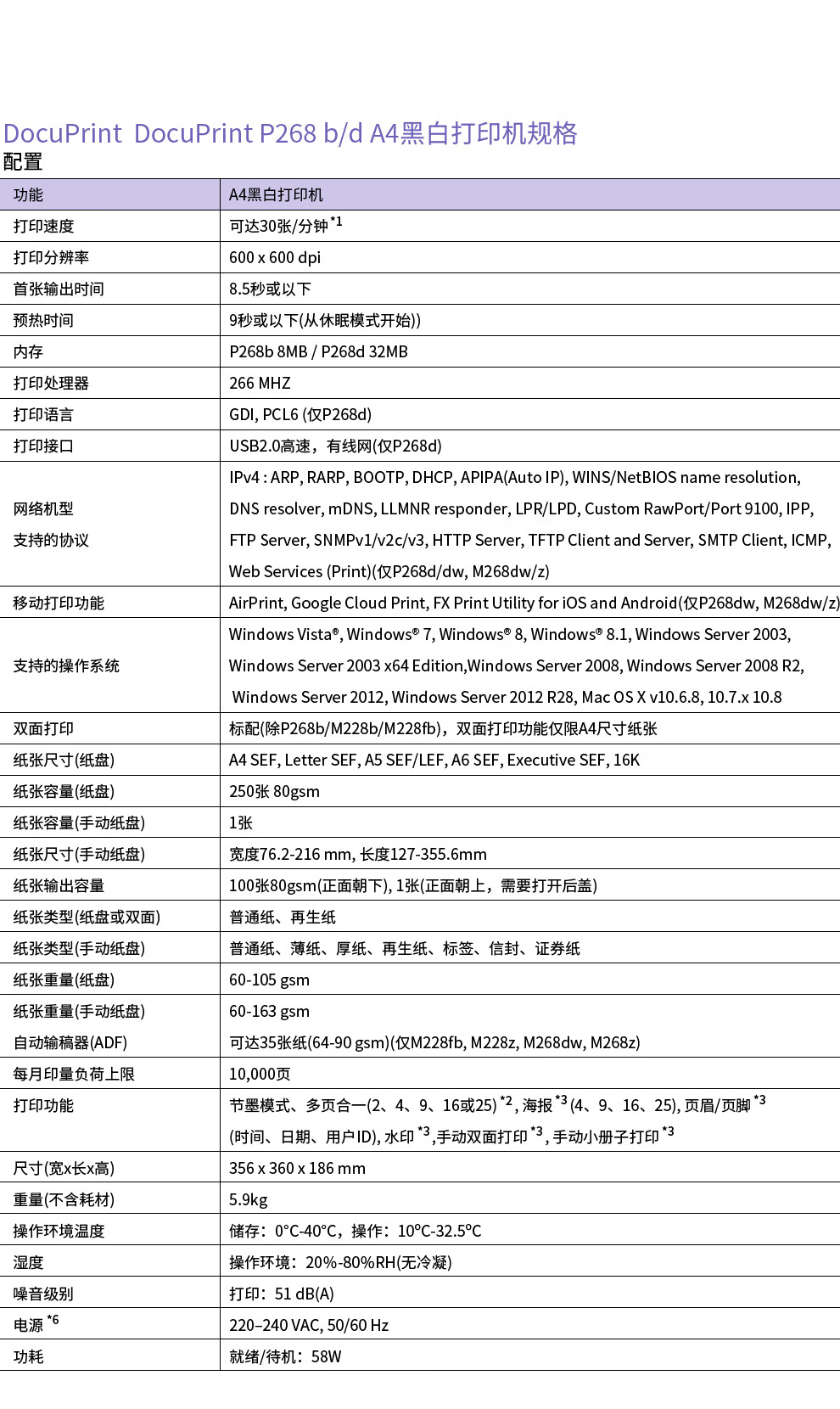 商品名称:富士施乐(Fuji Xerox)P268B黑白激光网络打印机 黑白激光打印机P268B
