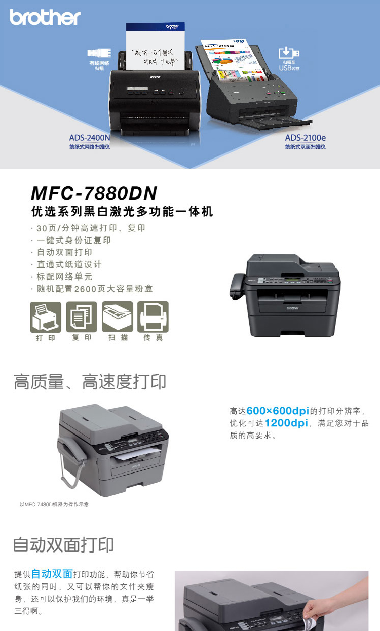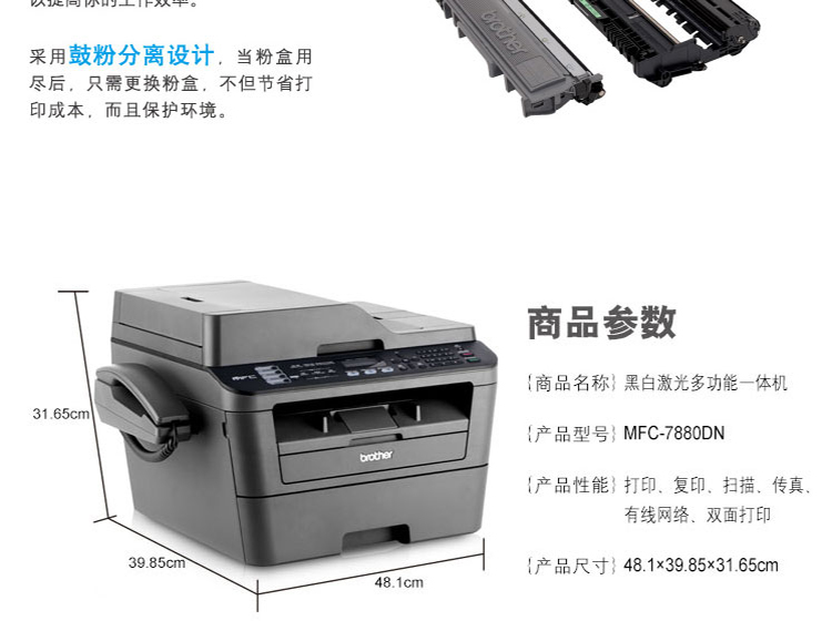 商品名称:兄弟(broTher) MFC-7880DN 黑白激光多功能一体机