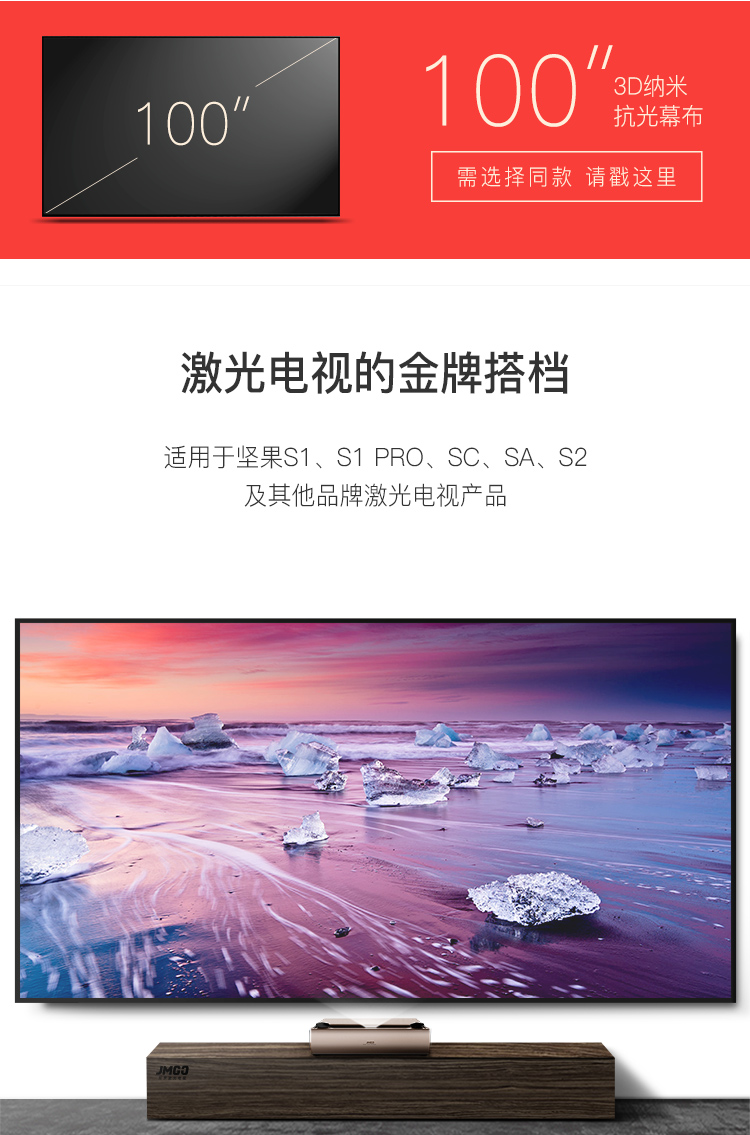 坚果激光超短焦投影仪激光电视SC/SA/S1 Pro/S2/U1专用幕布屏抗环境光幕布/菲涅尔 抗光幕布120寸【软屏】