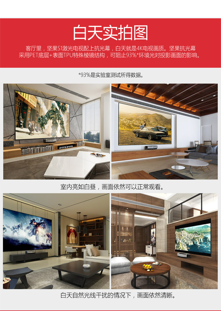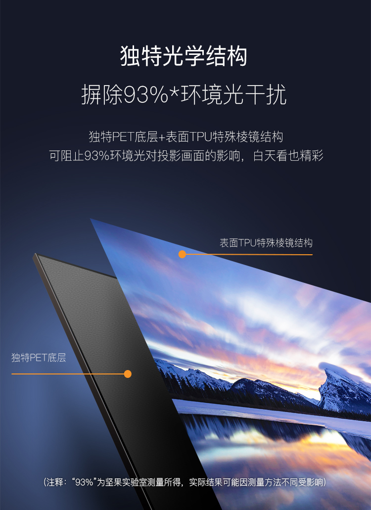 商品名称:坚果激光超短焦投影仪激光电视SC/SA/S1 Pro/S2/U1专用幕布屏抗环境光幕布/菲涅尔 抗光幕布120寸【软屏】