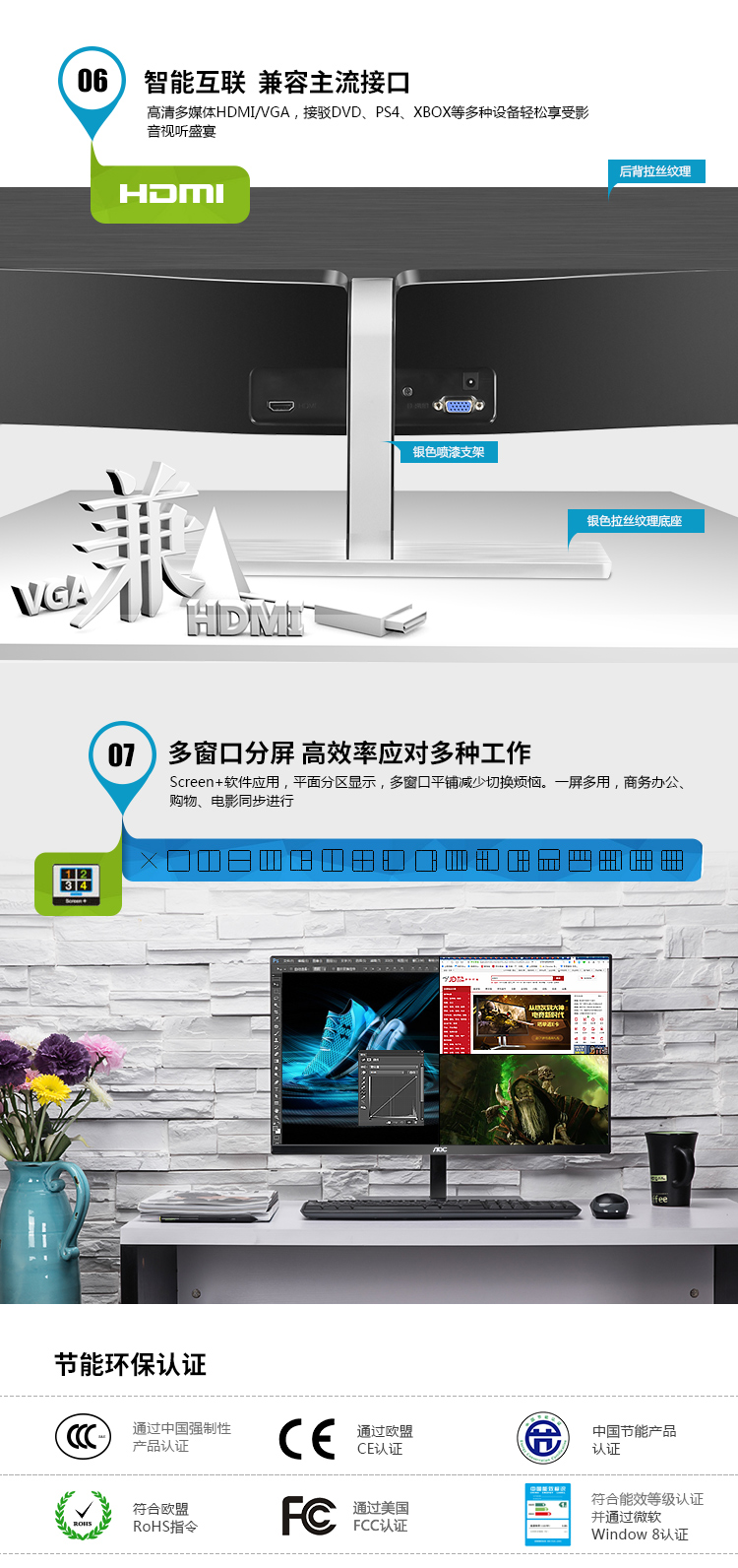 AOC 215LM00067显示器 HDMI接口IPS家用办公电脑全高清液晶显示屏幕