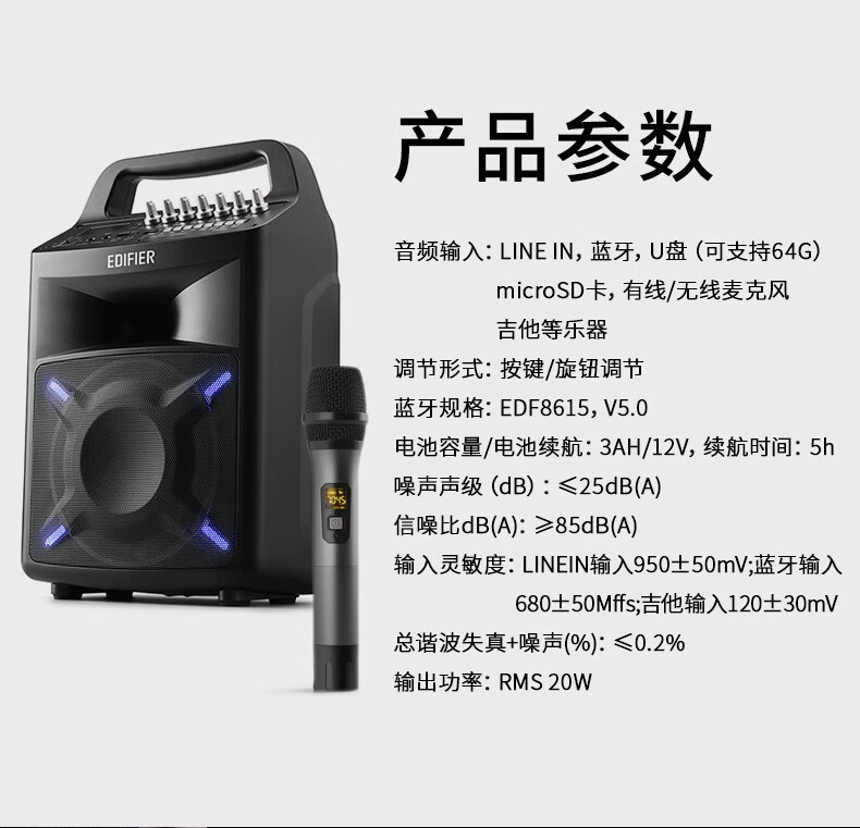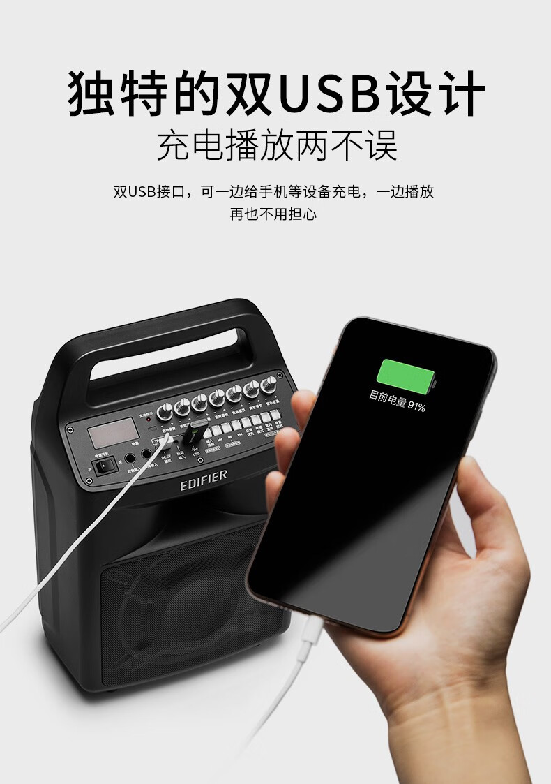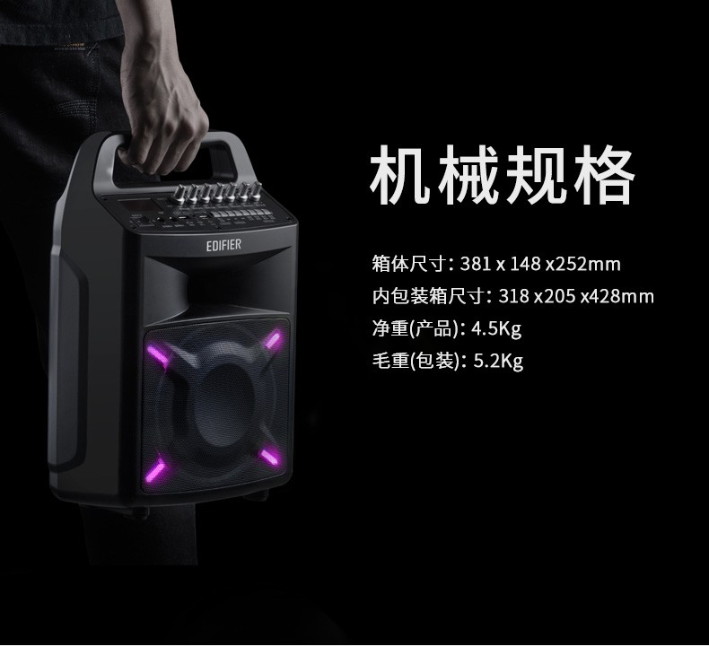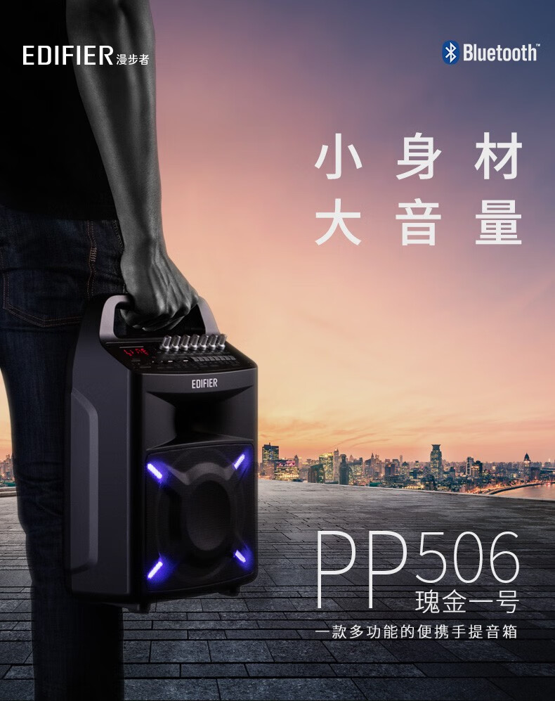 商品名称:漫步者 (EDIFIER) PP506 6.5英寸专业级移动音响 广场舞音响 蓝牙手提音箱 户外便携式音响 会议音响 黑色