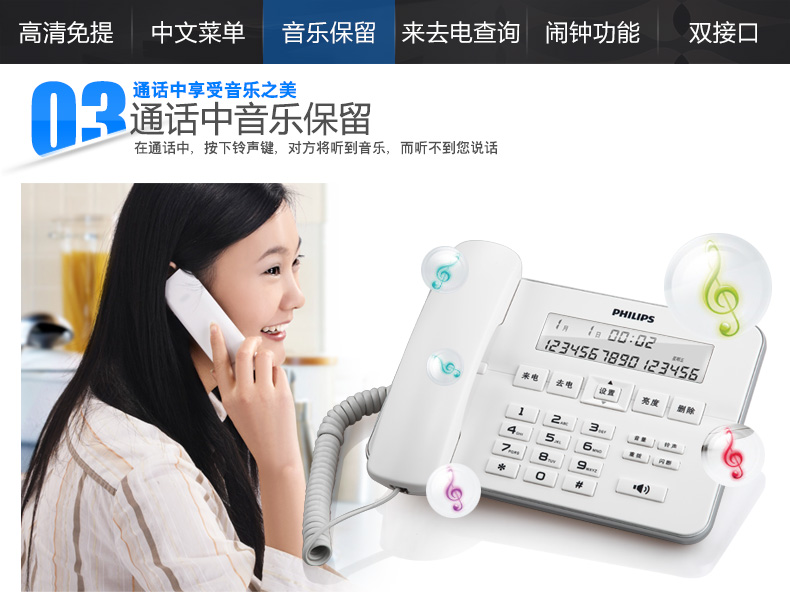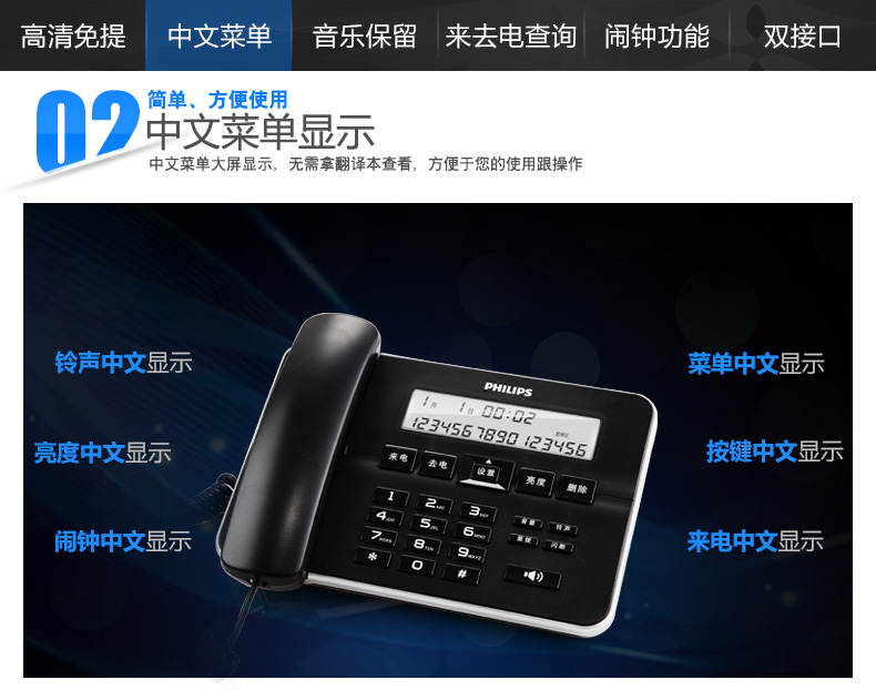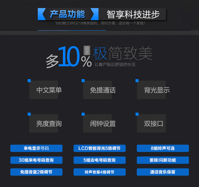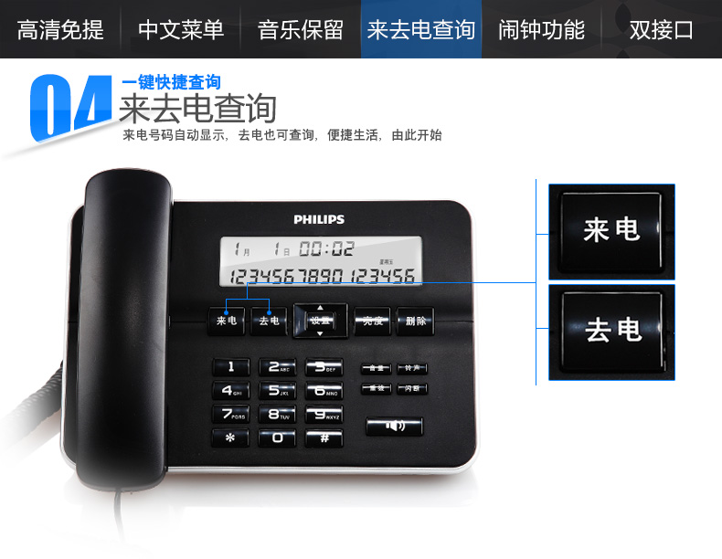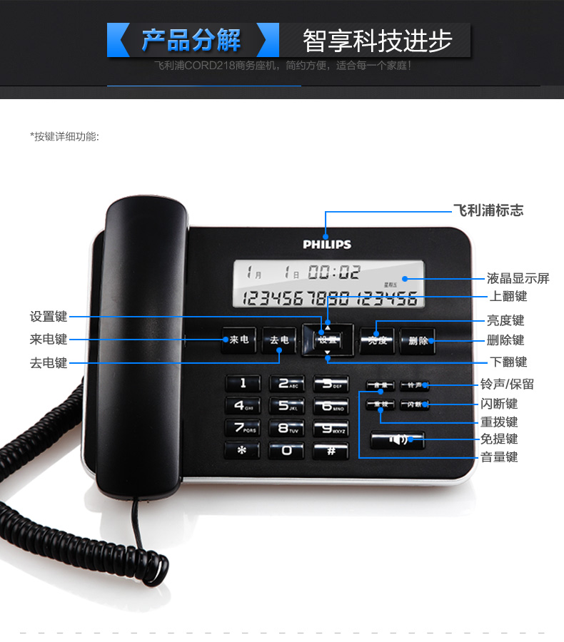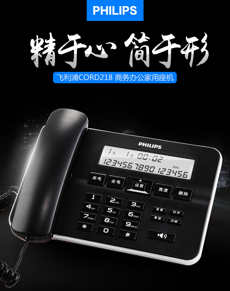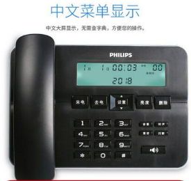 商品名称:飞利浦 PHILIPS CORD218 来电显示电话机 家用座机 宽屏办公座机 黑色