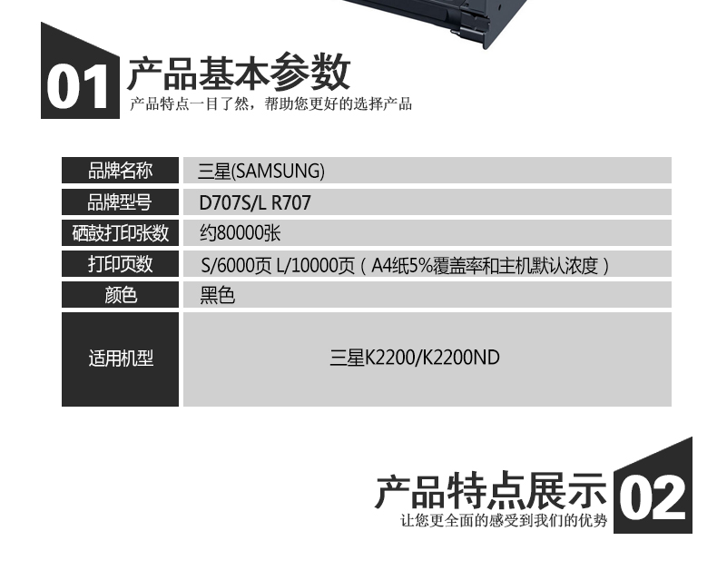 商品名称:原装三星(SAMSUNG)K2200 K2200ND 碳粉墨粉粉盒墨盒成像鼓硒鼓感光鼓 原装三星D707L墨粉碳粉盒10000页
