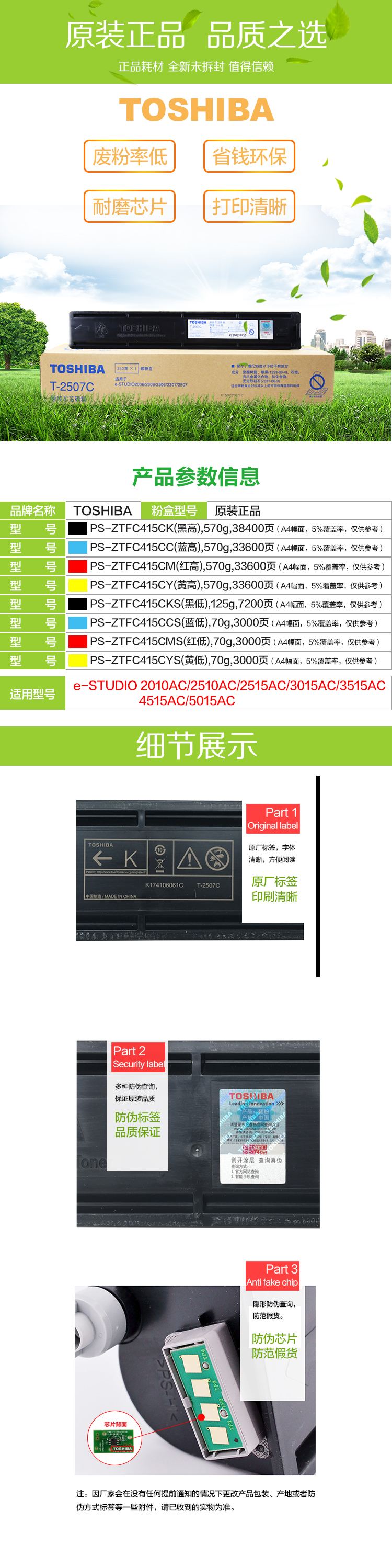 商品名称:东芝(toshiba)T-FC415CM原装碳粉