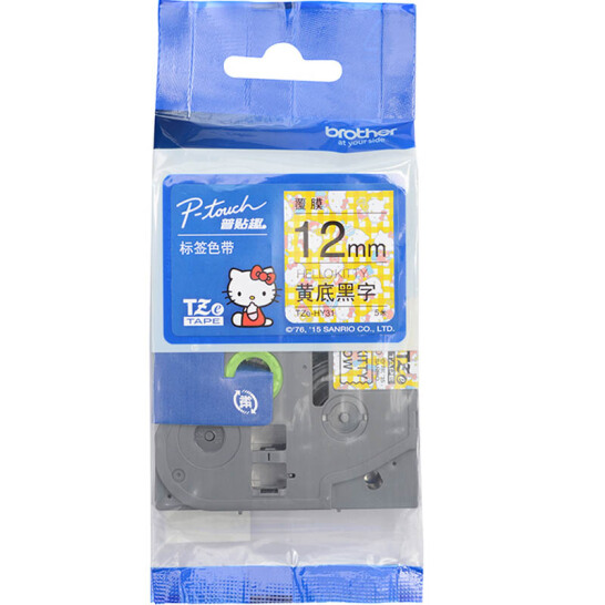 商品名称:兄弟(brother)TZe-HY31 12mm 卡通黄底黑字 Hello Kitty底纹色带