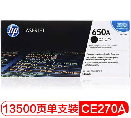 商品名称:原厂 惠普(HP) CE270A 650A 黑色原装 LaserJet 硒鼓 (适用LaserJet CP5520) 13500页