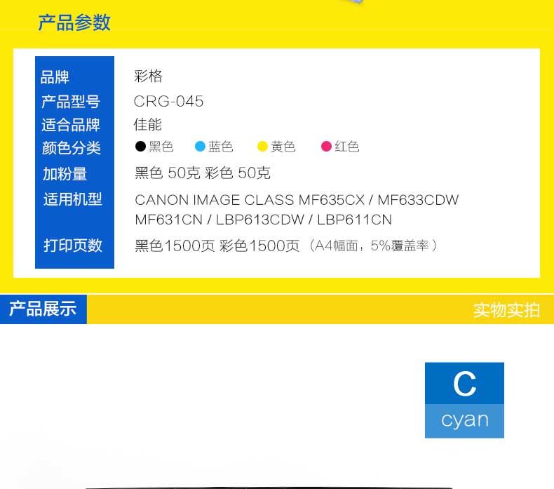 商品名称:彩格适用佳能CRG045硒鼓MF635Cx 633Cdw MF631Cn 611CN MF613硒鼓 CRG-045硒鼓【黑色】