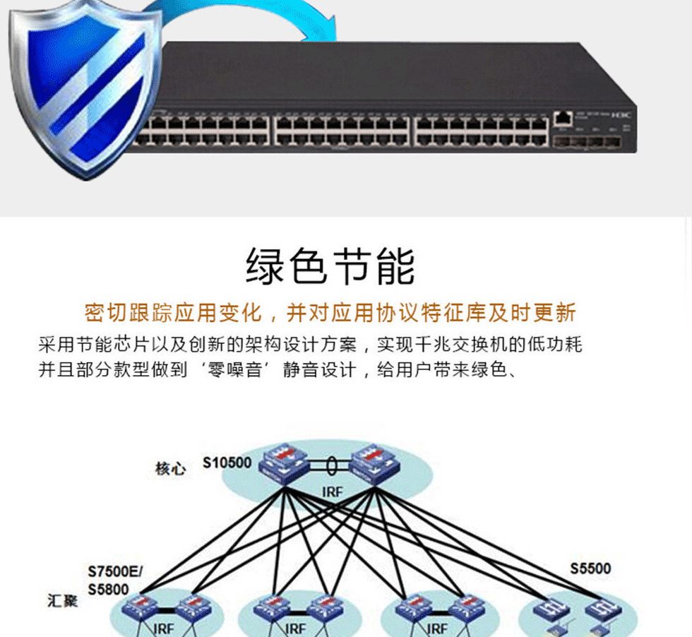 H3C S5130-52S-SI L2以太网交换机主机,支持48个10/100/1000BASE-T电口,4个1G/10G BASE-X SFP+端口,配置4个万兆SFP+模块,支持AC