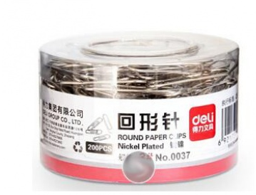 商品名称:得力(deli) 0037 镀镍金属银色回形针/曲别针 财务文件分类收纳 办公用品 0037 经济型圆盒银色回形针 (200枚/筒)